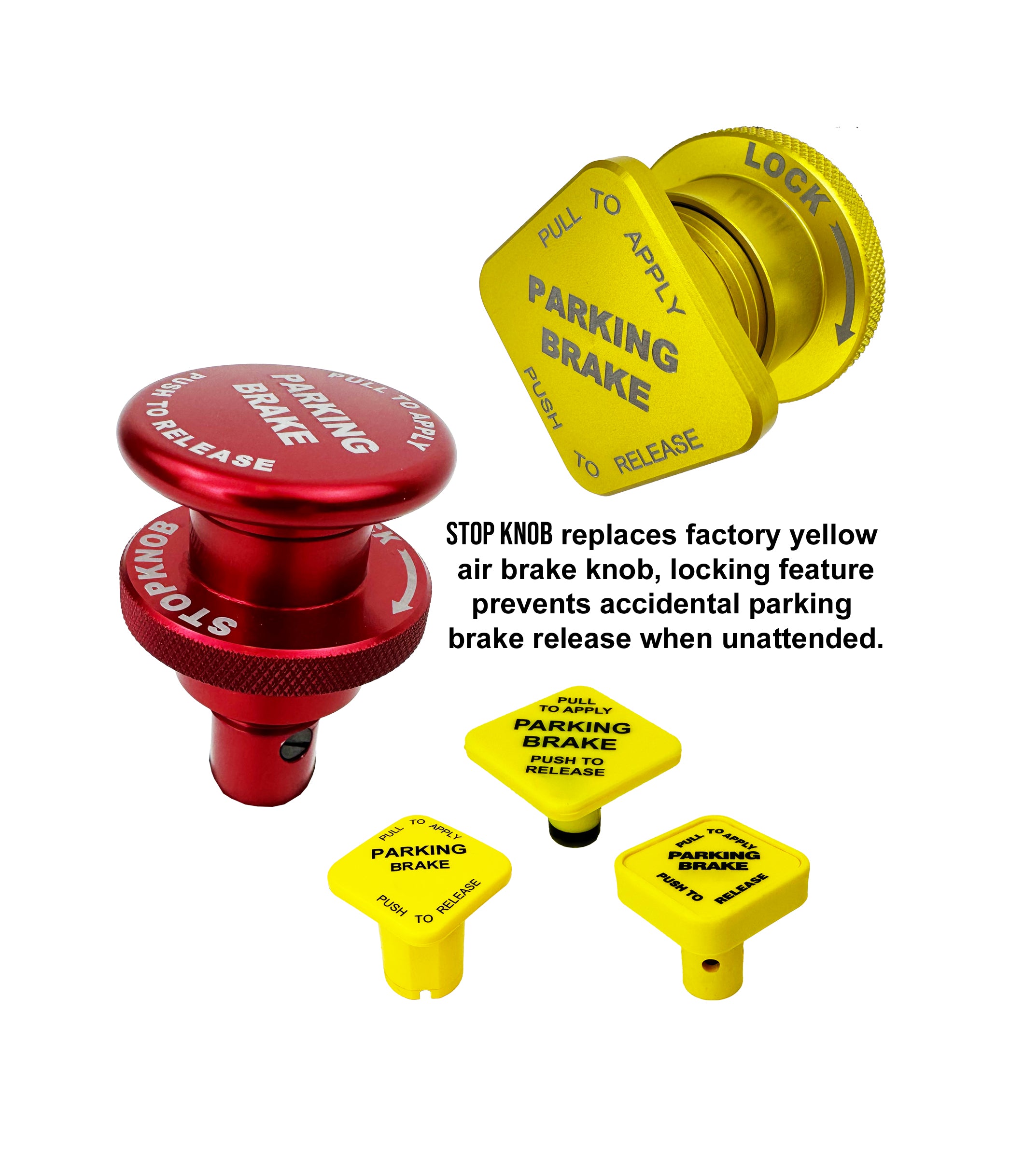 Don't worry anymore about your Motorhome, Commercial Vehicle, or Bus accidentally rolling away while unattended. Stop Knob is a securing device for the Parking Brake in vehicles equipped with Air Brake Systems. This knob prevents an accidental brake release that could cause serious damage and possible bodily harm or death.
