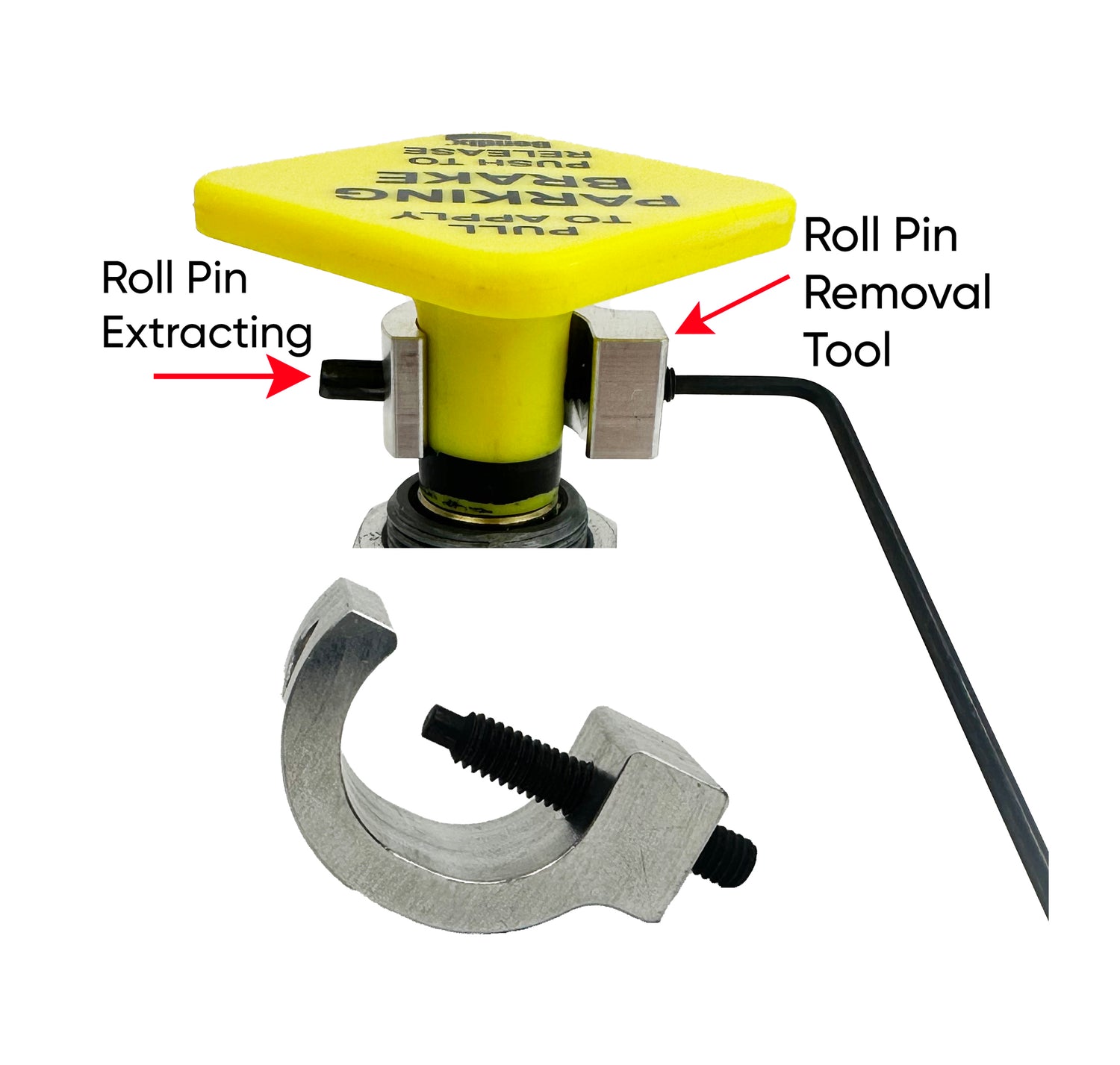 removes the Roll Pin on factory air brake knobs that require removal of a Roll Pin. We sell this tool separately too.